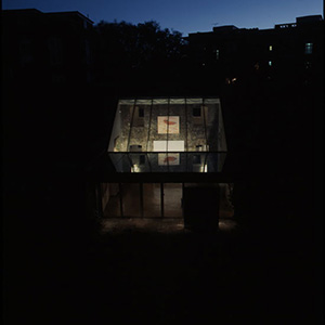"Looking at Hoogstraten’s optic box, one is reminded not only of the Flemish insistence on the continuum of domestic and urban space (through the telescopic collapse of five domestic chambers that connect street to alley, slate gives way to pine, to ceramic, to terracotta and then to sandstone) but also that there is something inherently nostalgic about optics – the bread and butter of seventeenth-century natural philosophy. A nostalgia that our corporeal existence fixes. While visuality is able to evolve, our eyes are always lenses and always subject to what Kepler described as the ‘artifice of observing’. That said, nostalgia organises more than a thinking about the passage of light in the project we look through when we peer into this letter-box: the house and garden is the site of my childhood. A complex reflective and reflexive architecture of separation is already inscribed in its topography and fabric, which, like the optic space of the project it generated, is both convoluted and of deceptive reliability. To return to this site with optics can only constitute a conscious auto-voyeurism. Amir will insist that mirror is just another material, and he is right, but he is also wrong. Mirror, or at least its reflective property, cannot help but trip us over the elusive threshold that separates physical from psychic space. Alice has been there. So too have Hitchcock, Loos, Wittgenstein, Soane, the glaziers of Versailles, Peeping Tom, Orson Welles, Freud and Bruce Lee, to name but a few. The baggage that mirror carries is a weighty excess. But what one might refer to as psychic space, here called into play by a radical separation of physical and optical space, will not mesh with the neat and enlightened determinism of optics. For a start, it is inherently both obscured and obscuring, as the term darkly so artfully introduces into ‘through a glass darkly’. This obscuring state is key here: the moment before you recognise mirror as mirror, when a suggestive and highly subjective, if not autobiographical, spatiality emerges. This is quite different from the prescriptive art of illusion that employs optics with a deterministic faith that is all about an exquisitely neat meshing. Just as the illusory space we perceive when spying into Hoogstratens’s Peepshow is radically more complex than that of the painted rectangular box we are looking at, the modernist plan of this project belies a perceptual spatial envelope which, in its convolutions and complexity, establishes an ambiguity that is distinctly unmodern. Unlike the anamorphic projection Hoogstraten deploys to such extraordinary effect, the drifting subject here has no position of ‘optical arrival’. Instead the project generates a series of optically reconfigured sites within the subject as he wanders through house, garden and private gallery, from each looking back onto the other, in which arrival – that is, singular resolution – is not found."