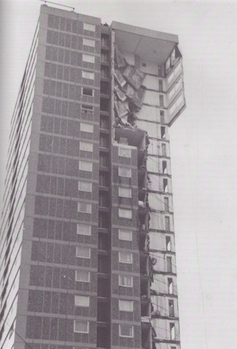 Run for Cover Ronan Point flats, partial collapse due to a natural gas explosion, Newham, East London, May 16, 1968.